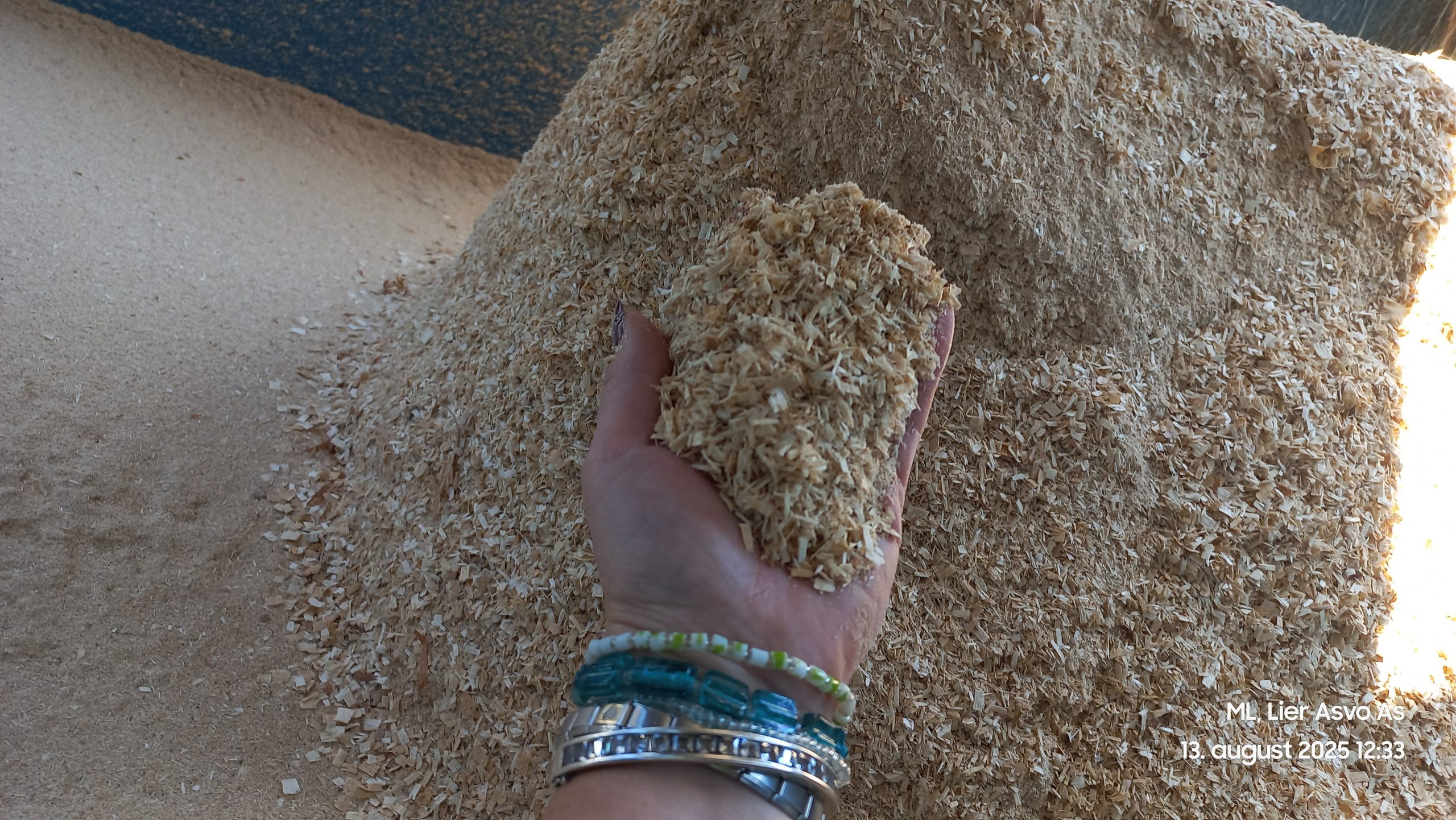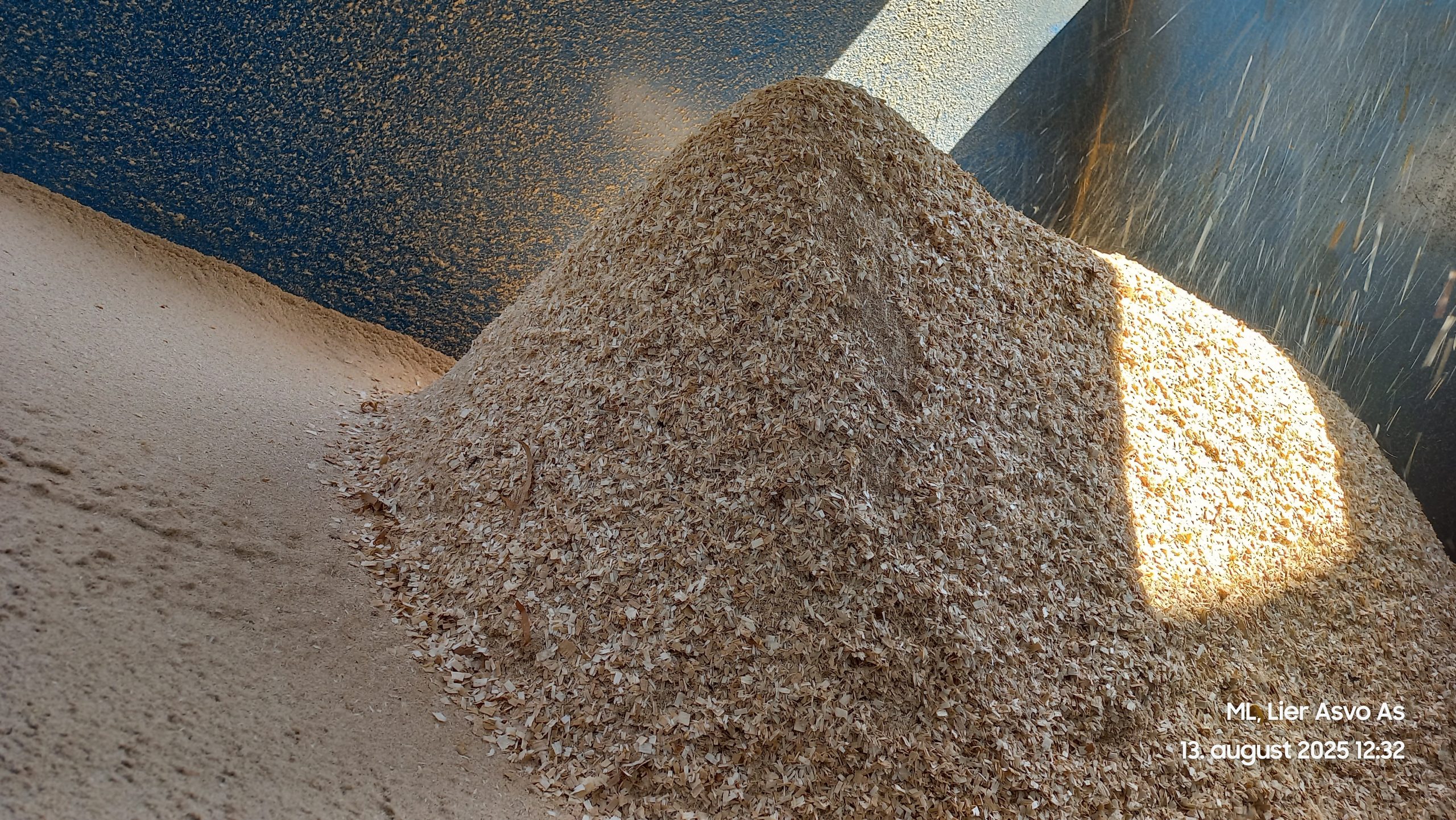 Rå produksjonsflis, tørker lett, gir lite støv og fin til dyra.